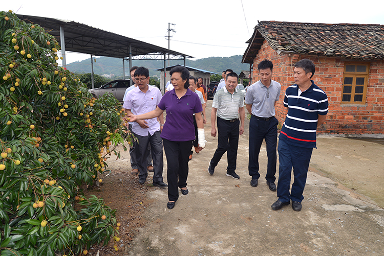 图为市政协副主席罗志芳(左二)参观调研南忠村江厂茘枝合作社等村级集体经济发展情况。陈就邦 摄