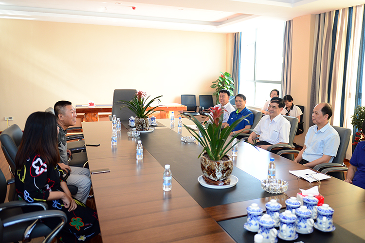 图为黄定嵩副主席一行与企业负责人座谈,了解企业发展运营情况。